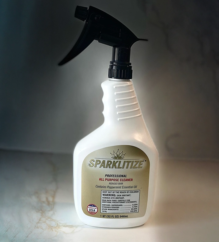 The Sparklitize® All Purpose Cleaner and Sparklitize® Heavy Duty Cleaner are efficient against the toughest messes in your bathroom, kitchen, and all around your home and office .